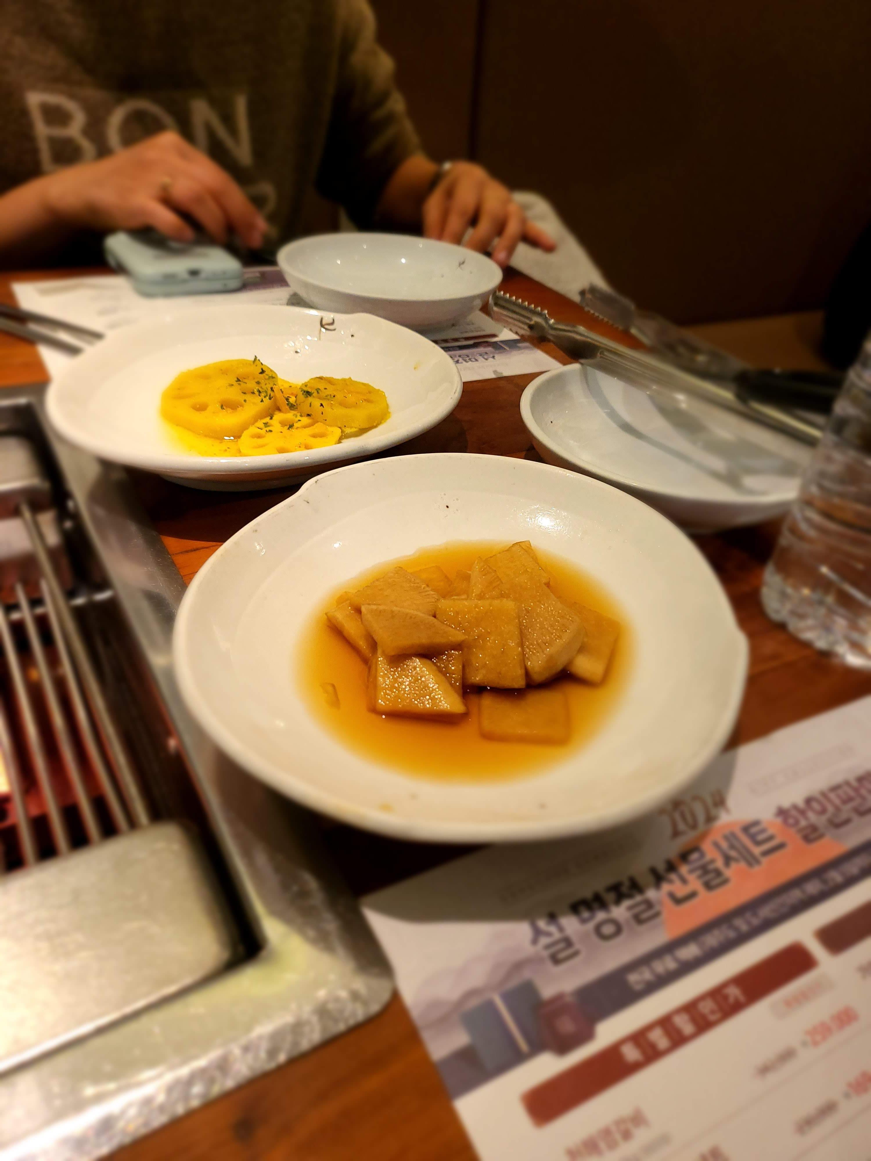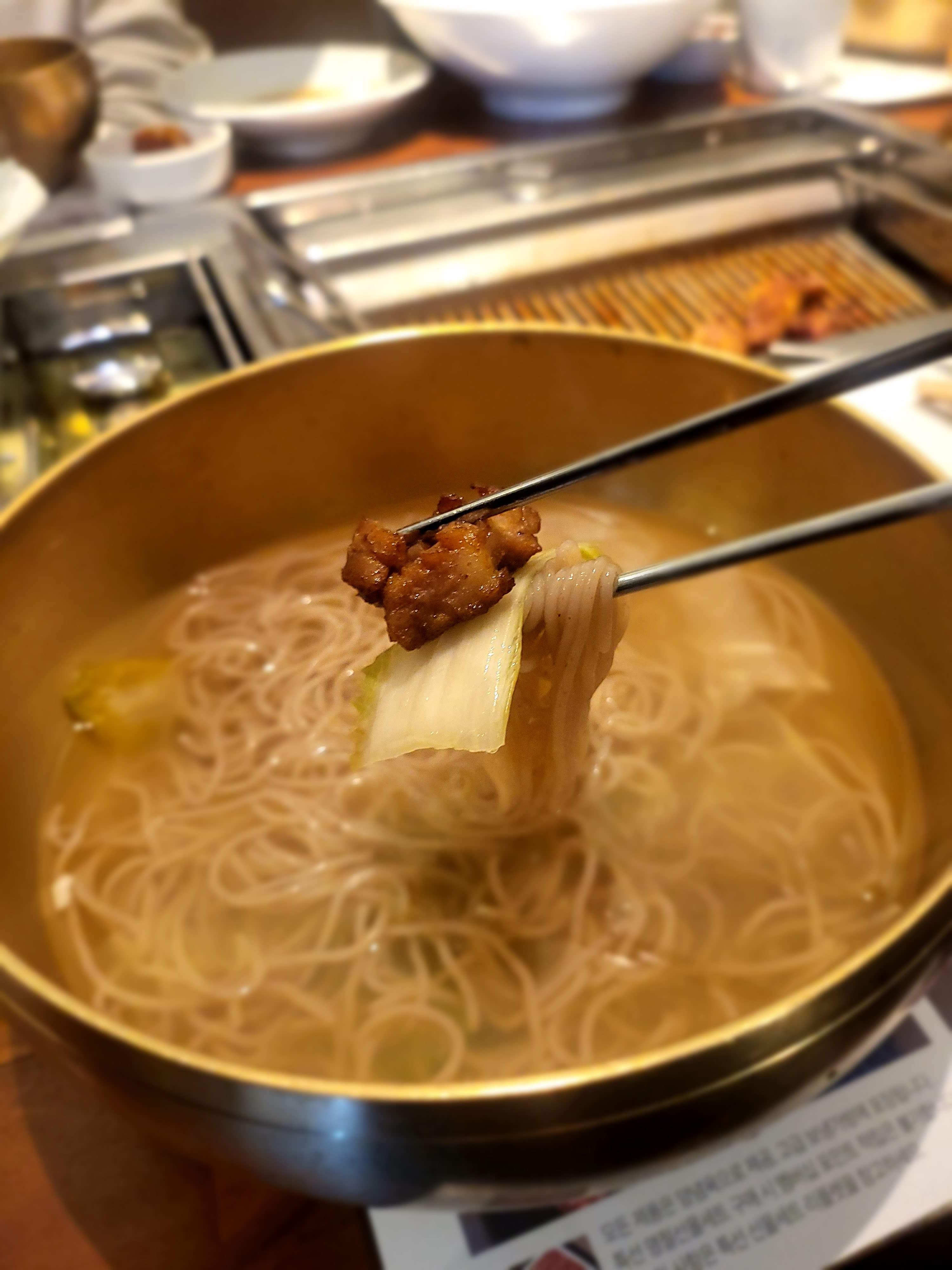 고기가 조금 부족해서 돼지갈비를 추가해서 먹었는데 사진을 제대로 못찍었네요. 세 점 남았을 때 찍은 사진 밖에 없네요. 추가 메뉴를 시키다가 발견한 건데 점심정식의 고기 양과 일반 주문의 고기 양이 같습니다. 점심정식에는 같은 가격에 식사를 추가해 주는 구조네요. 가격이 같아서 정식을 시킬까하다가 굳이 음식을 남기기 싫어서 일반 메뉴로 주문했습니다.