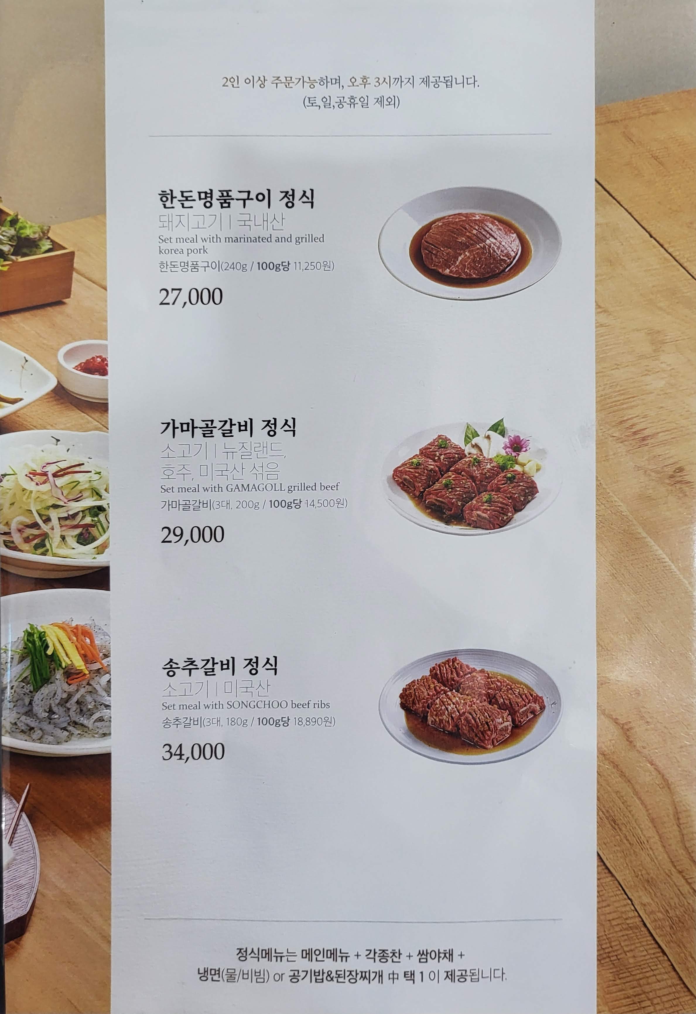 저희는 점심 특선 메뉴인 송추갈비 정식(34,000원)을 주문했습니다.