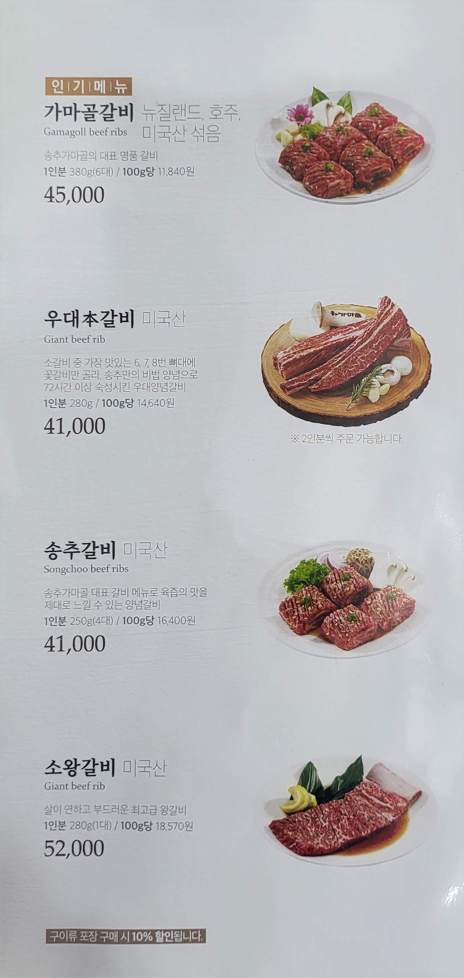맛도 가격도 서비스도 딱 적당합니다. 오히려 이런게 프렌차이즈의 장점아닌가 합니다. 가끔씩 가족들과 아니면 회식 때 방문하는 집이지만 그냥 꾸준하게 평타는 쳐줍니다. 참고로 송추가마골 인어반 상암점은 단체로 가기에도 나쁘지 않습니다.