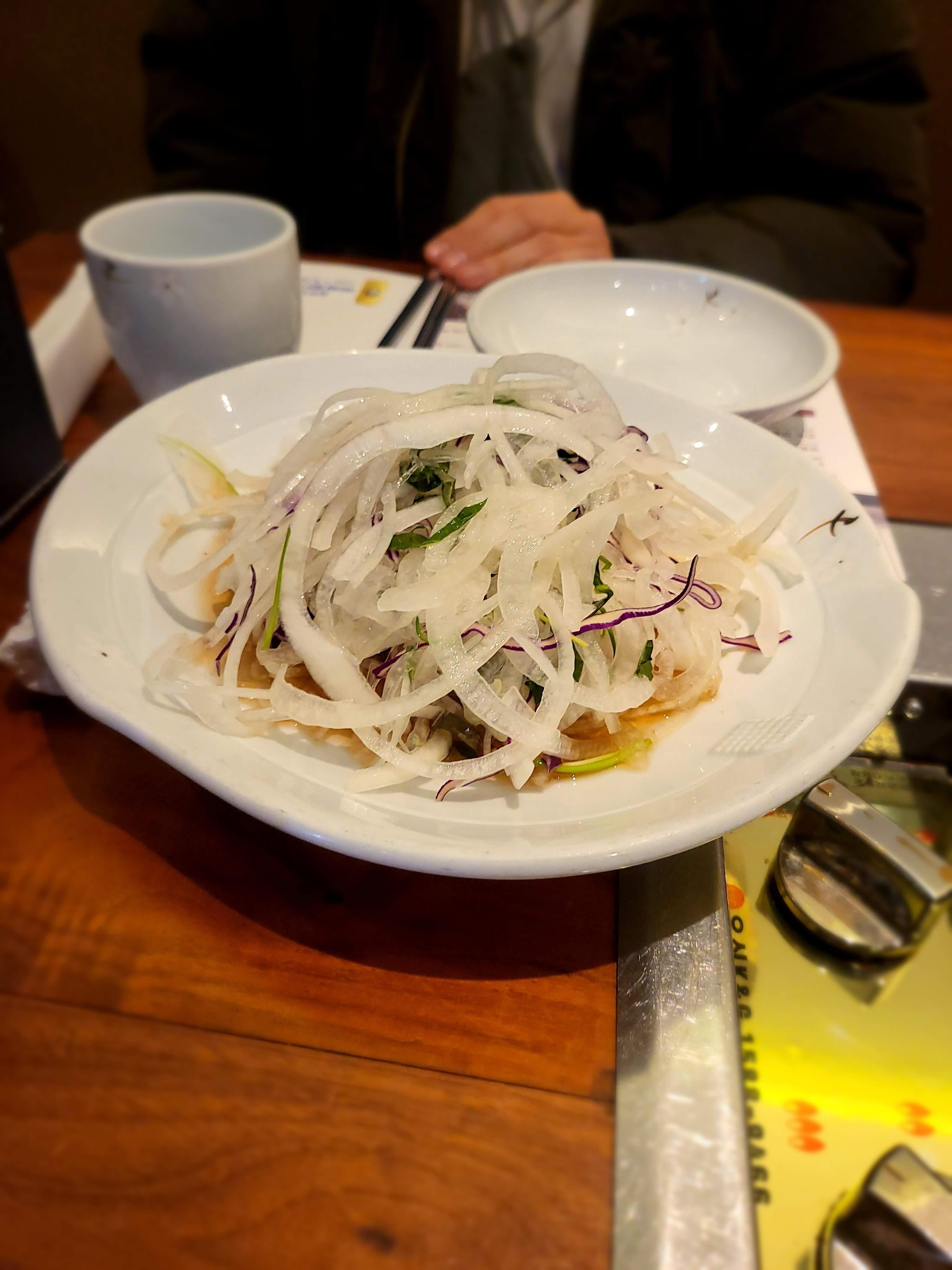 정식이라서 식사도 포함되어 있습니다. 저는 물냉면을 주문했습니다. 저는 이날 평양냉면을 먹고 싶어서 배꼽집을 골랐었는데 평양냉면으로 머릿 속을 채웠다가 함흥냉면을 먹으니 좀 아쉬웠습니다. 그러나 이 집 냉면이 맛이 없다는 얘기는 아니니 오해 마시길 바랍니다. 일반적인 고깃집 함흥냉면에 비해서는 퀄리티가 좋습니다.