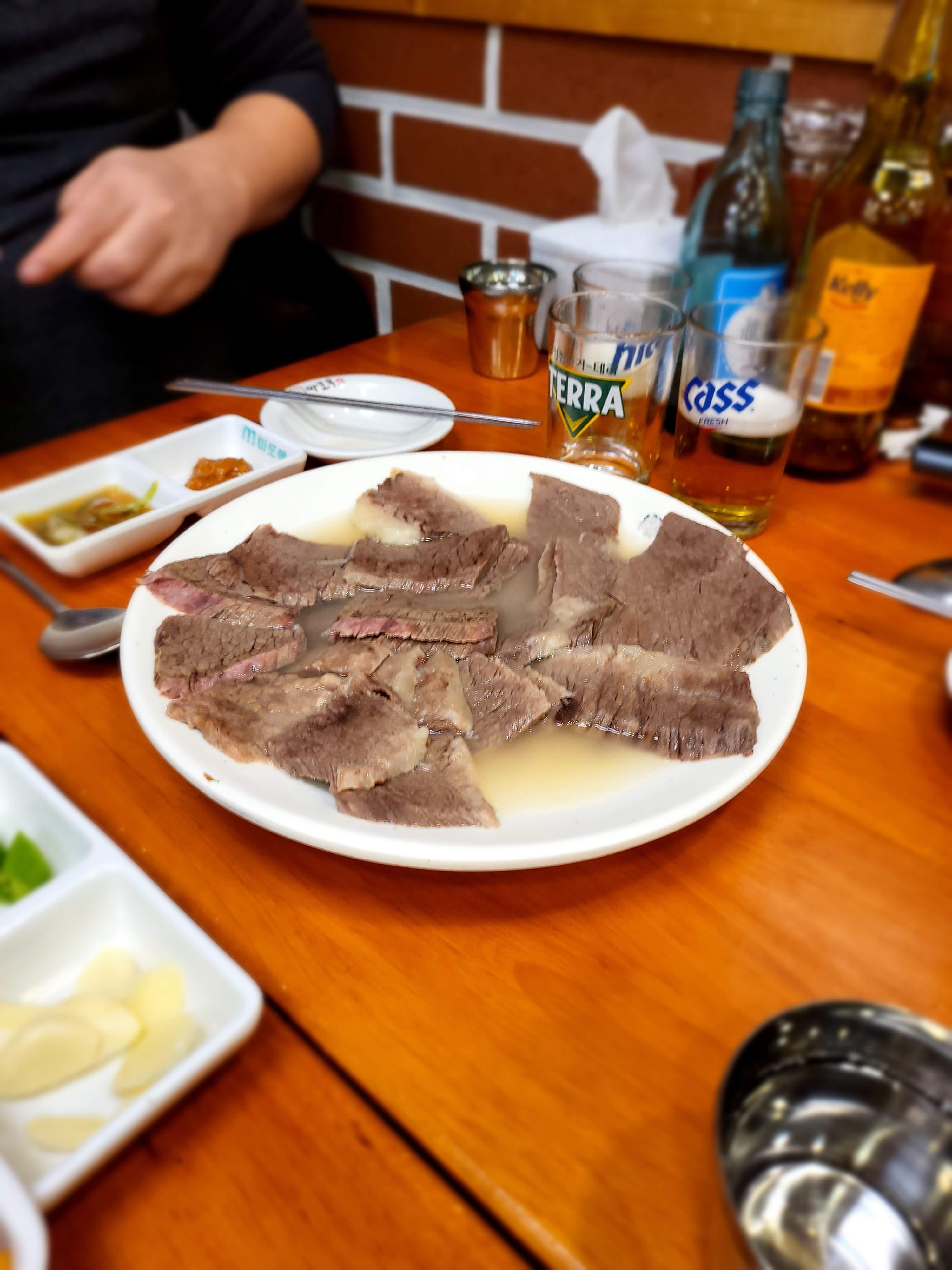 맛있는 집입니다. 국물이 정말 좋습니다. 특히 포장을 해와서 집에서 먹은 양지탕이 가게에서 먹었을때 보다 더 맛있었습니다. 양지탕과 함께 먹었던 김치도 매장에선 특별히 맛있다는 생각을 못했었는데 포장 후 이틀 후에 먹었던 김치맛은 정말 맛있었습니다. 탕이 메인이긴 하지만 수육도 아주 보들보들하니 맛있습니다. 가격이 싼 편은 아니라 자주 먹을 순 없지만 가끔 생각나는 물에 빠진 고기 입니다.