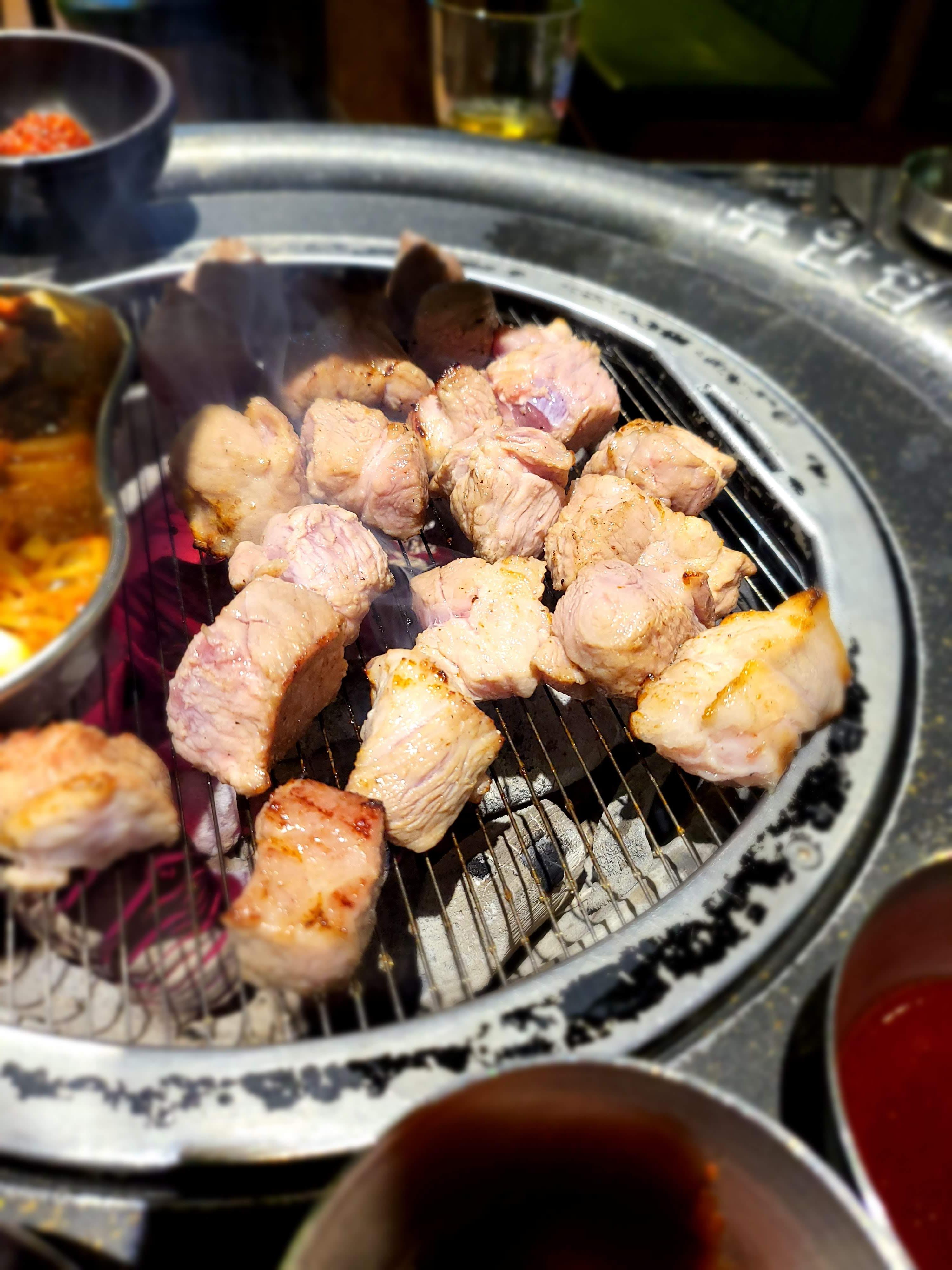 서버님께서 고기를 맛있게 구워주셨습니다. 참고로 추가 반찬은 셀프바에서 마음껏 가져다 드실 수 있습니다.
