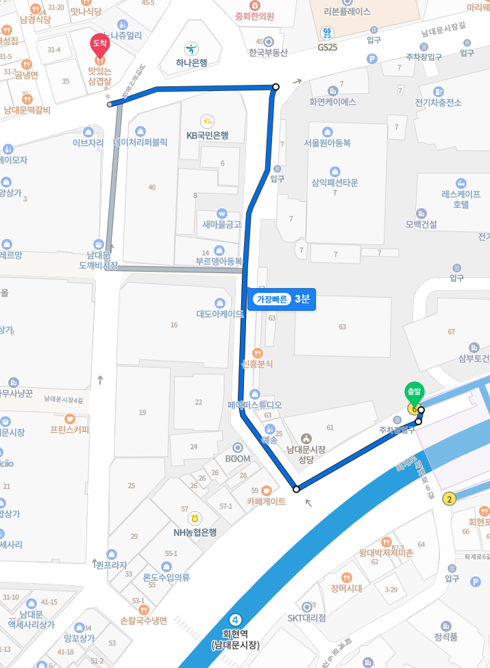 남대문시장에 위치하고 있어 주차는 힘듭니다. 회현역에서 도보 3분 거리입니다.
