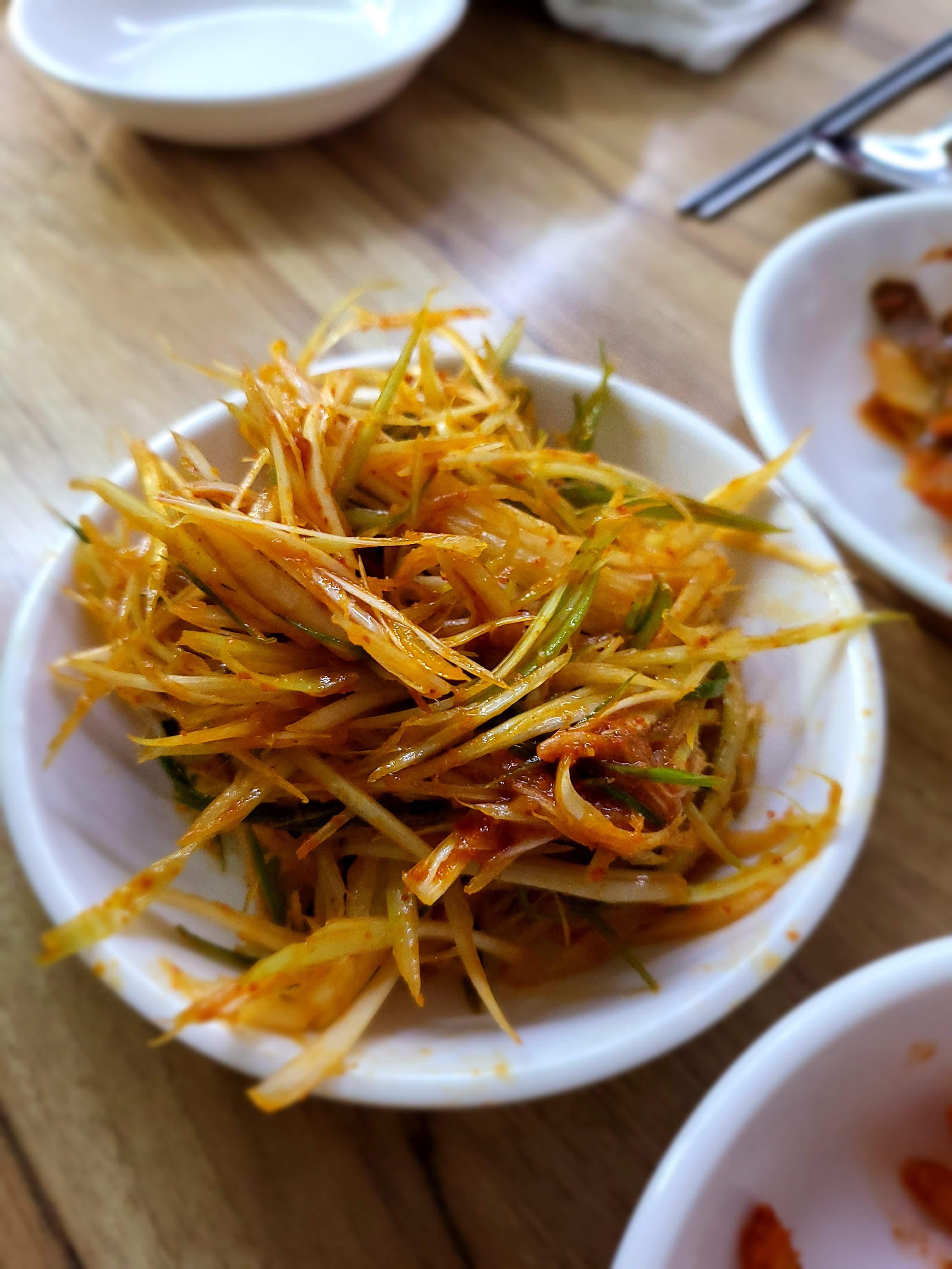 파절이도 훌륭합니다. 여느 파절이에 비해서 살짝 한 김 죽 죽어있고 시큼한 맛은 덜하고 기름의 고소한 맛이 좀 더 납니다. 다만 대파김치의 그늘 아래 있는 것 같습니다