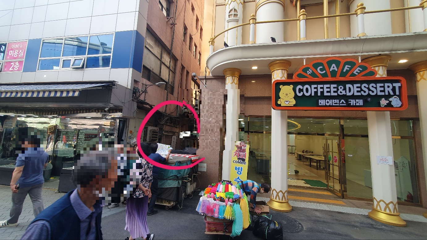 골목뒤에 숨어있어서 찾기가 쉽지 않습니다. 사진에서 보이는 골목으로 들어가셔야하고 보이는 것 보다 좀 더 안쪽으로 들어가야 입구가 있습니다.