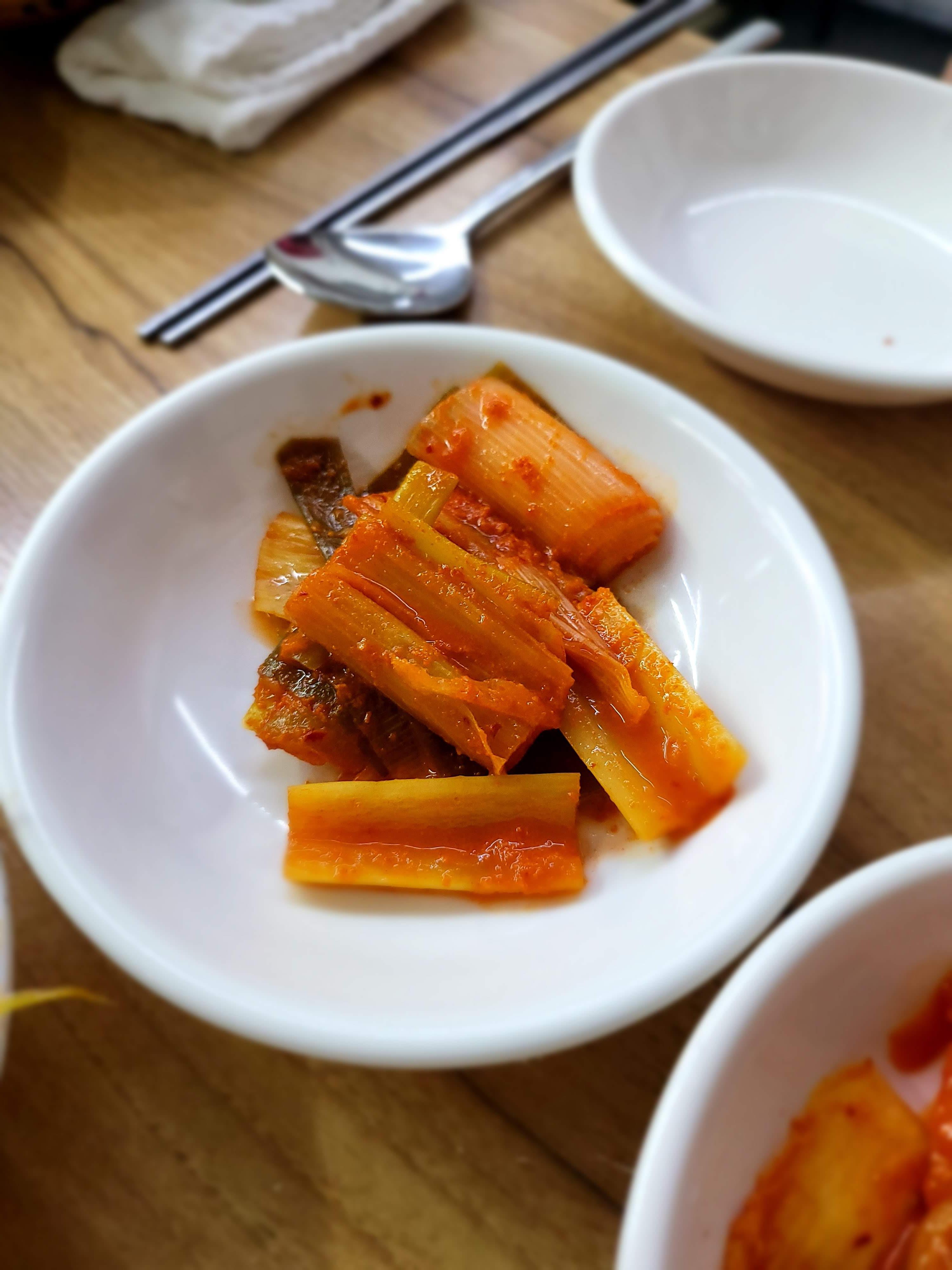 저의 최애 반찬인 대파김치입니다. 잘 익어 시큼한 대파김치가 고기와 너무 잘 어울립니다. 이 대파김치 때문에 고기를 더 많이 먹을 수 있다는게 함정 아닌 함정입니다