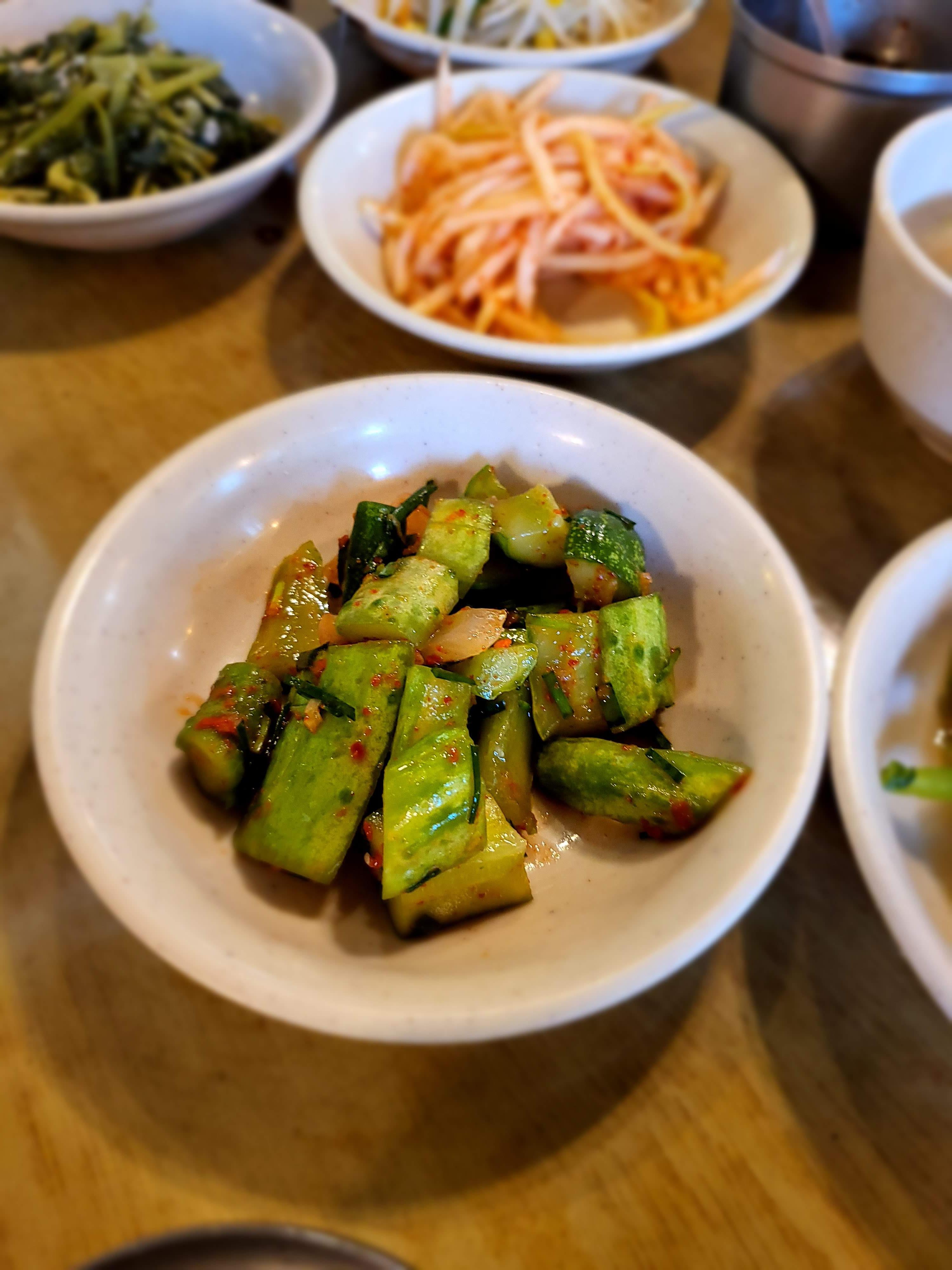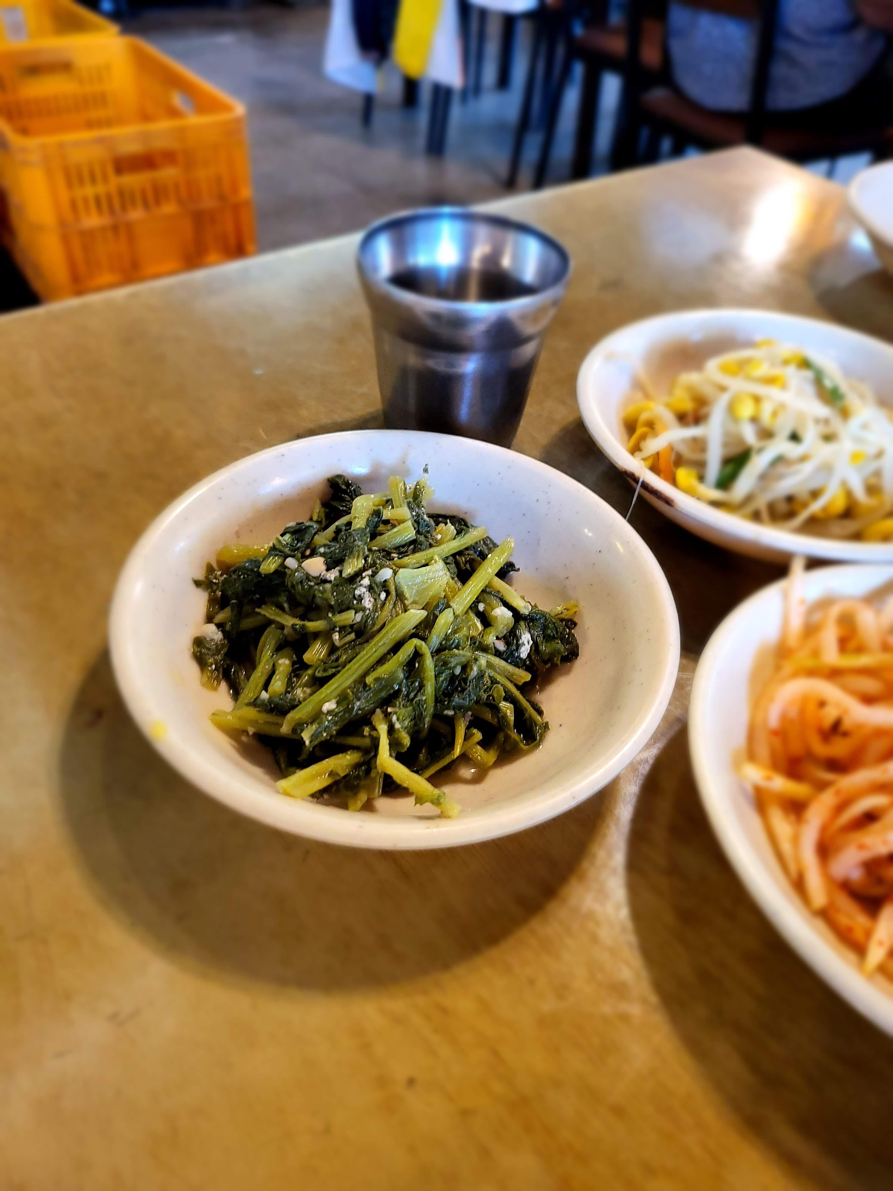 나물종류를 보셔서 아시겠지만 갖가지 나물을 넣고 고추장과 참기름을 넣고 비벼먹도록 세팅이 된 집입니다.
