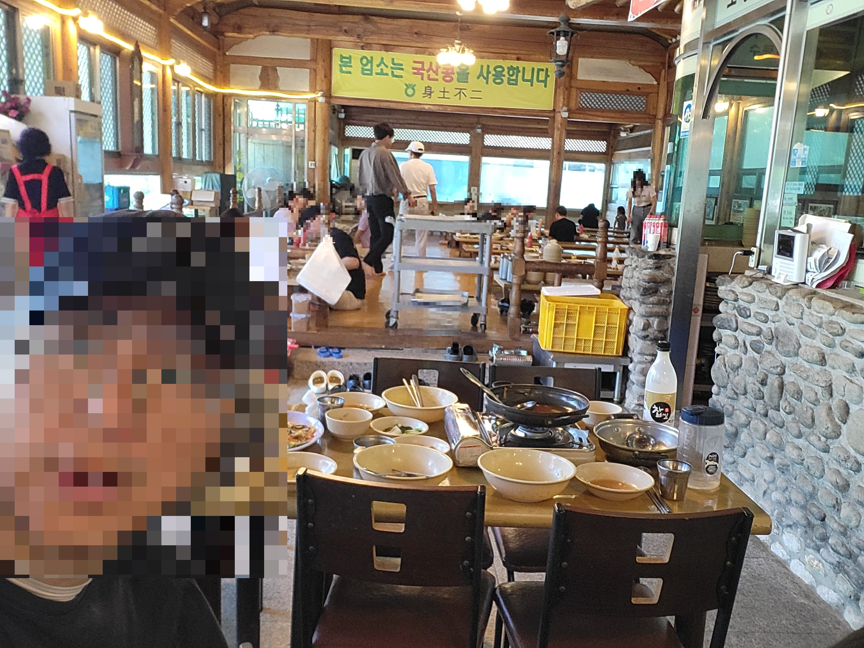 이 집의 메인 메뉴는 순두부정식입니다. 저희는 항상 시켰던 메뉴를 주문했습니다. 어른 셋 아이 하나 가서 순두부정식 두개, 청국장 하나, 두부튀김 하나를 시켰습니다.