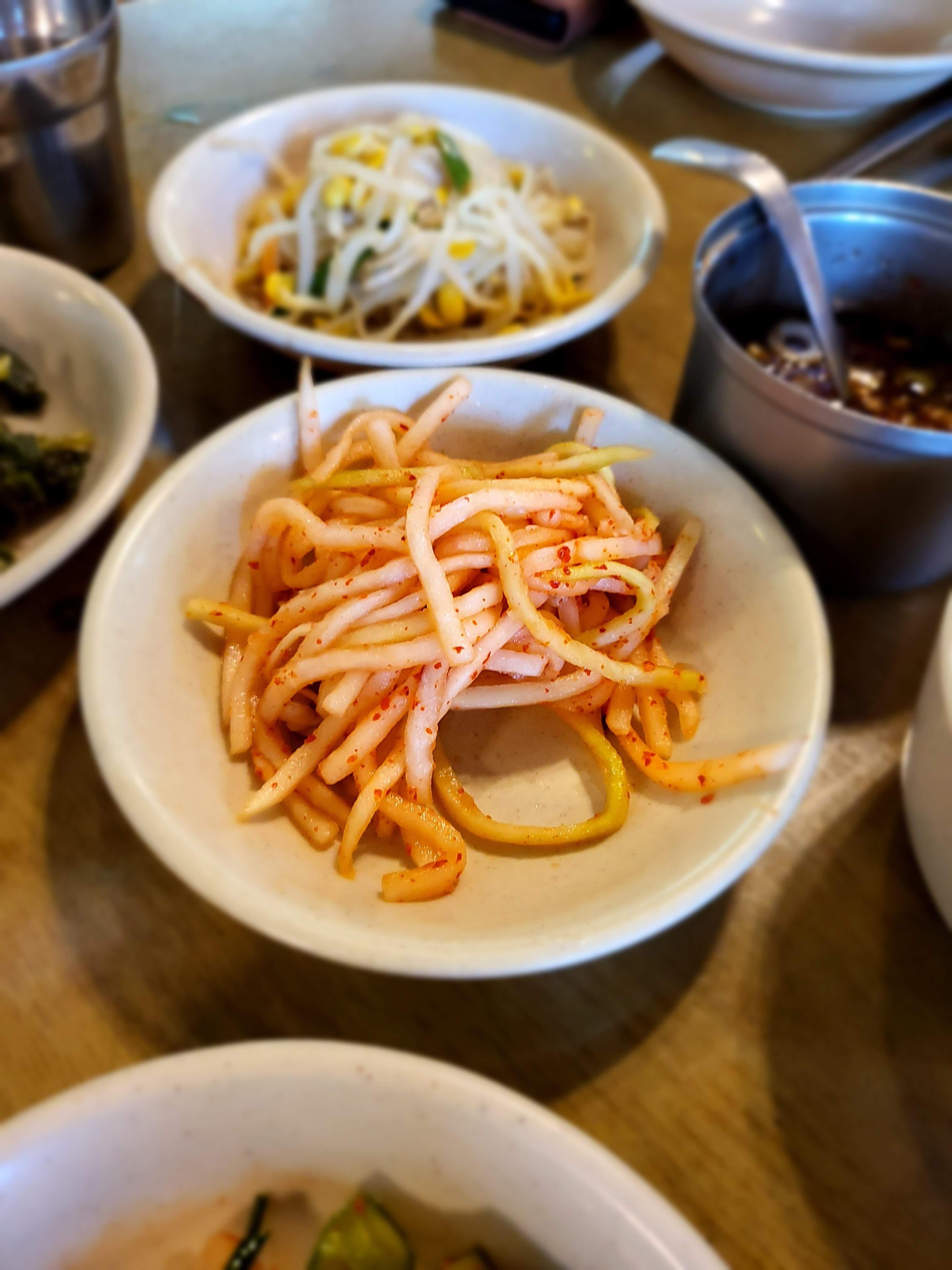 밑반찬이 나왔습니다. 시원한 열무김치입니다