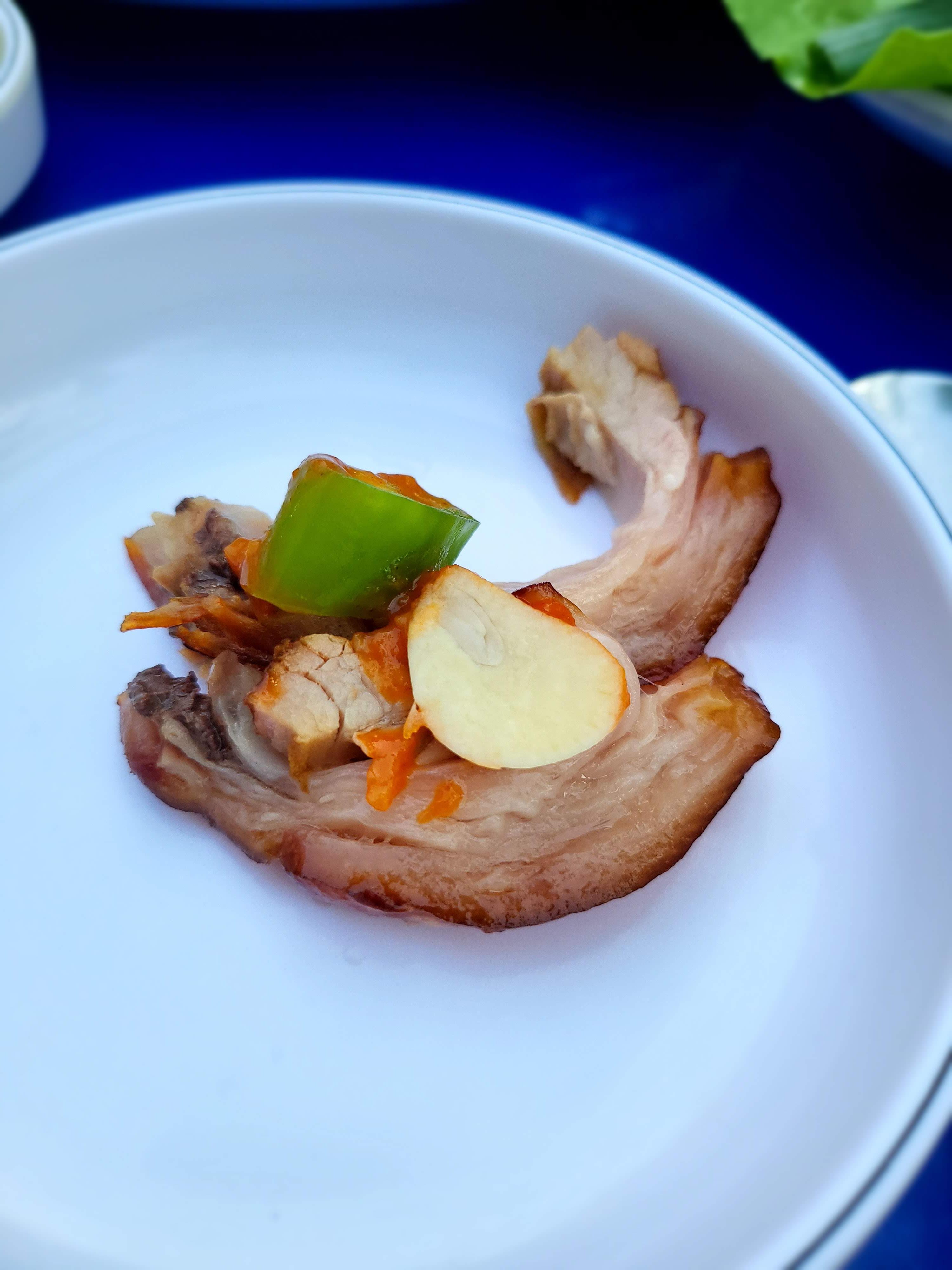 메인 메뉴인 족발이 나왔습니다. 부들부들하게 잘 삶아낸 족발입니다. 요즘엔 살짝 굳어서 쫄깃한 식감이 더 강조된 족발보다는 이렇게 부들부들한 족발이 대세가 된 것 같습니다. 저도 이런 족발이 더 좋습니다.