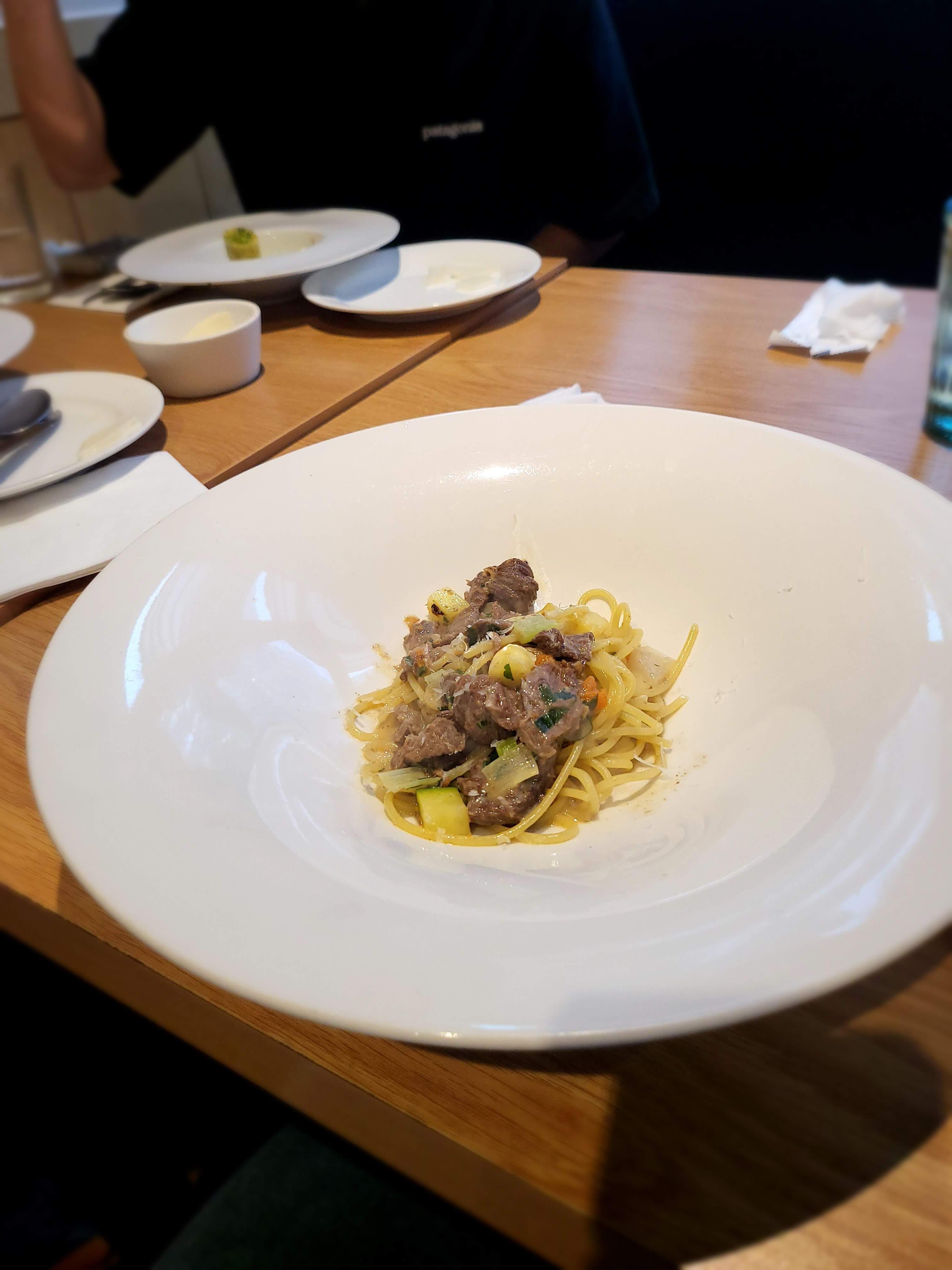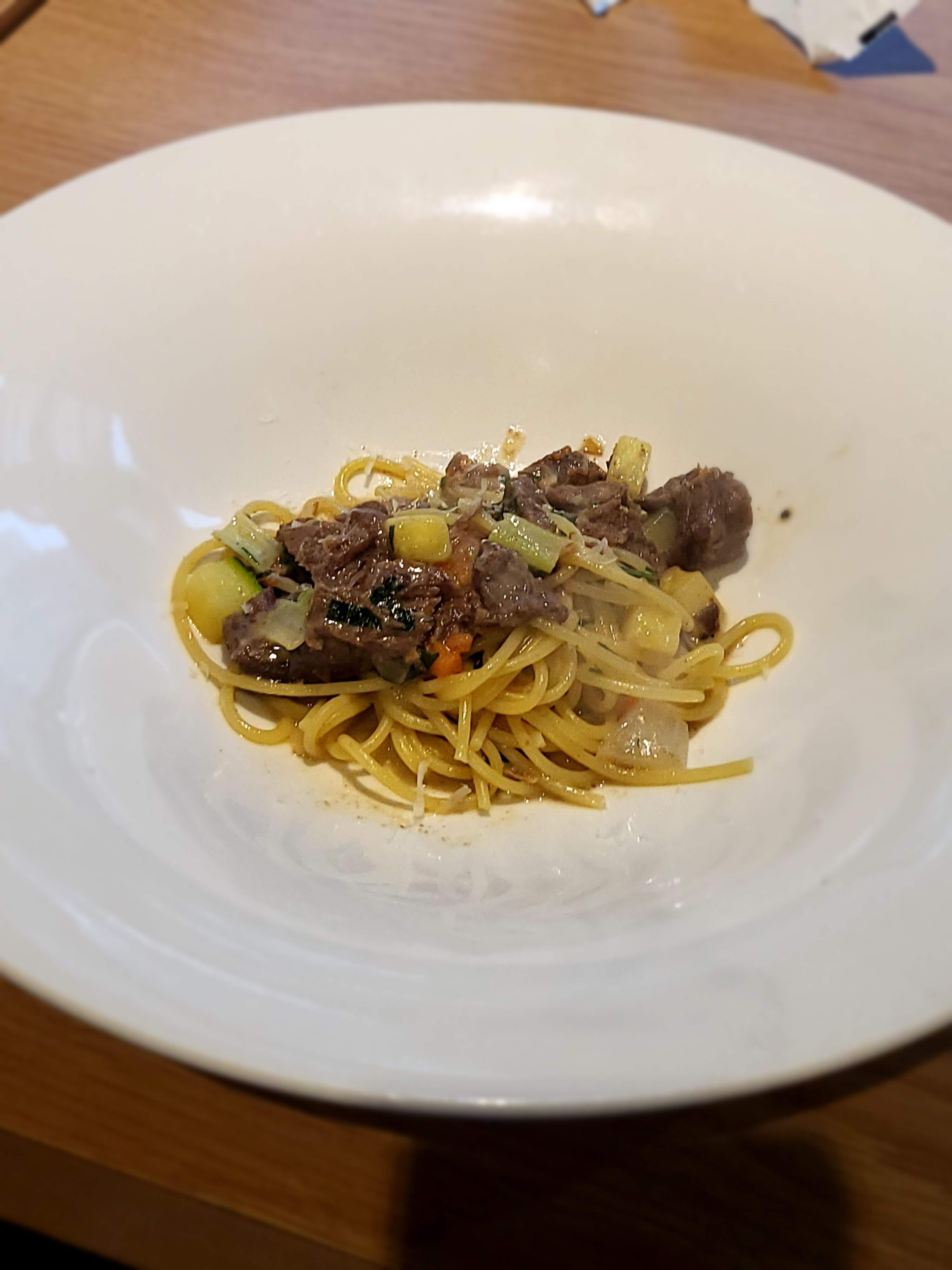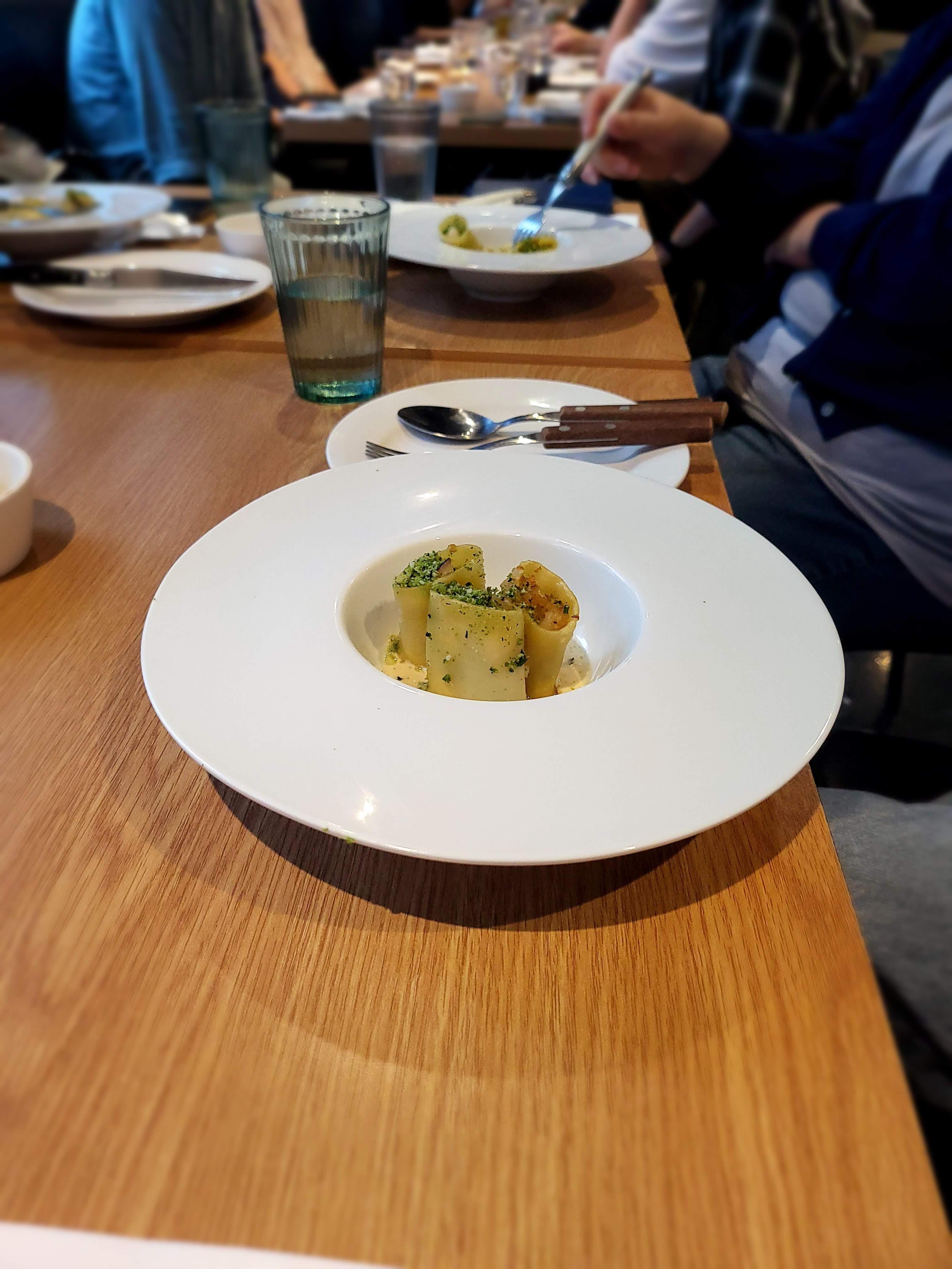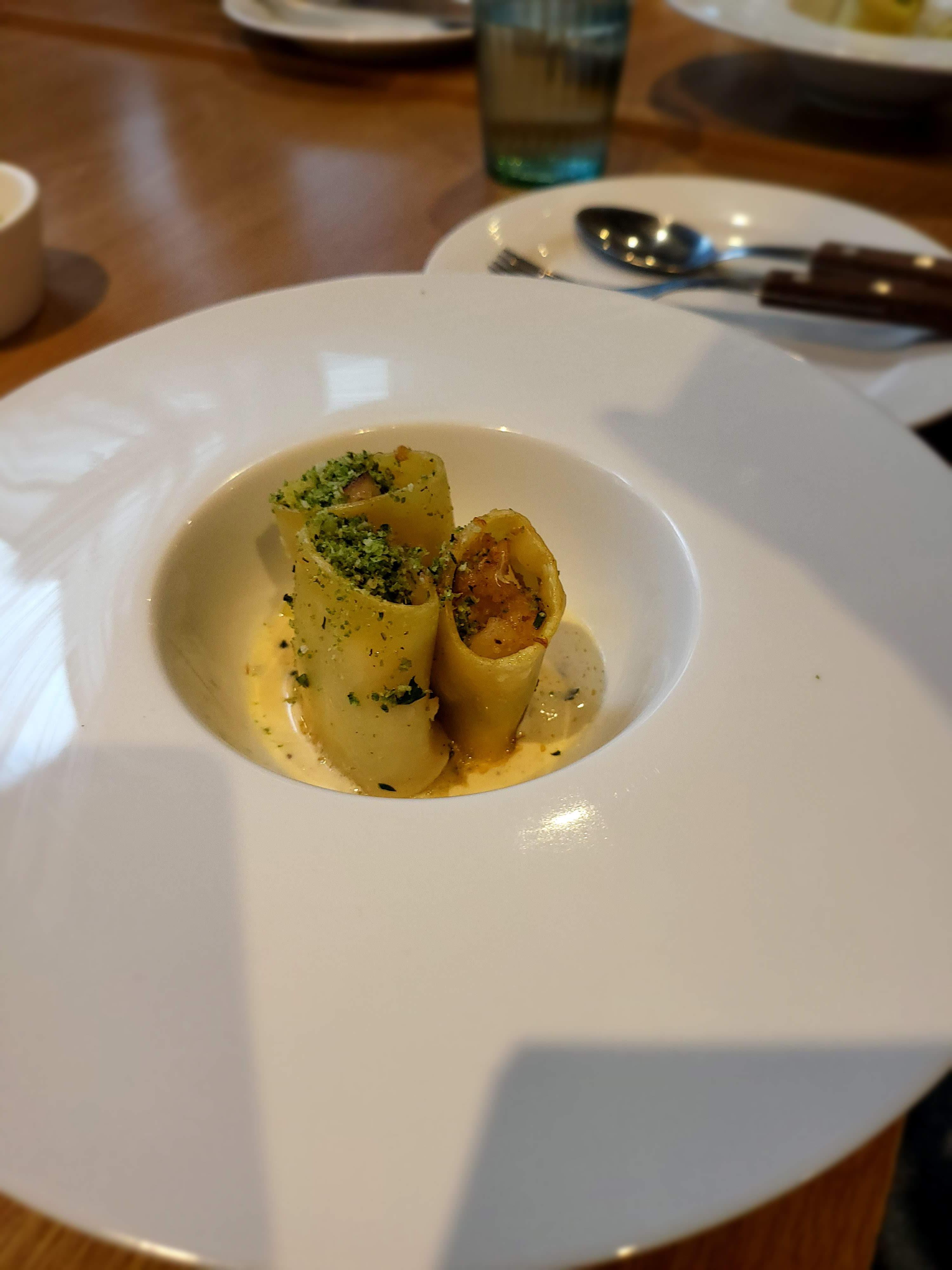 해산물파스타가 나왔습니다. 카넬로니를 잘라서 만들어놓은 것 같았는데 양이 생각보다 적어보였습니다. 저는 라구 파스타를 주문해서 다행이라고 생각했습니다.
